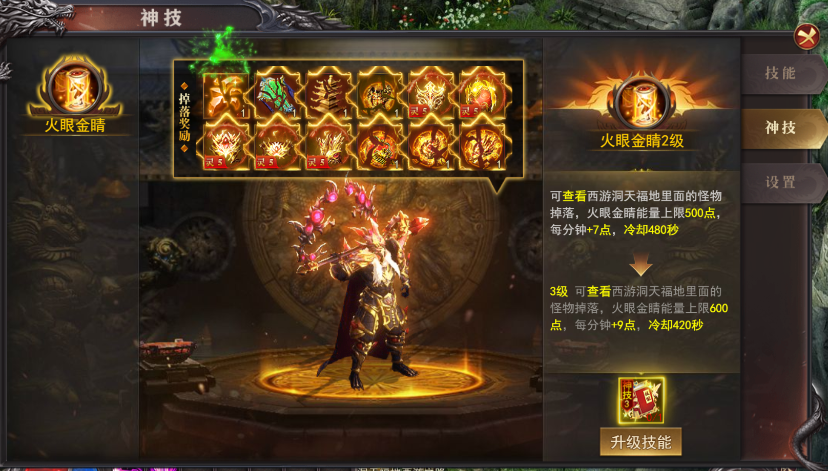 三、西游大陆专属技能——神技,超强透视西游boss掉落!!