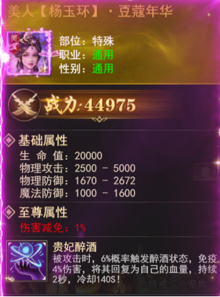 杨玉环: 被攻击时概率触发贵妃附体,将吸收自己伤害的一部分转换为血量,持续2秒