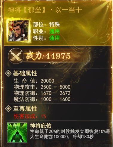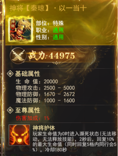 (2)神将庇佑: 生命低于40%的时候触发,立即恢复百分比生命,附加一定值