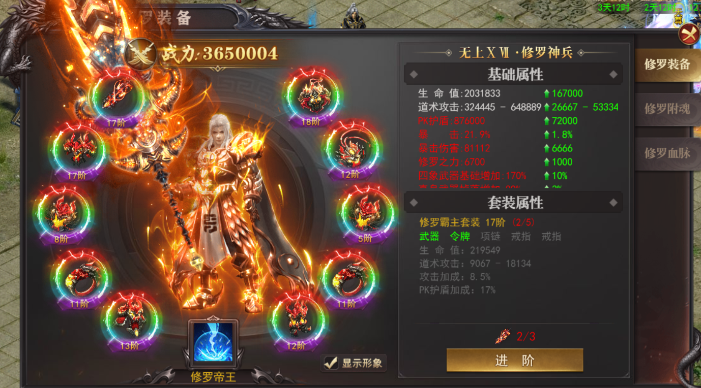 (3)附魂可以提升大量暴击伤害、pk护盾、突破后可以提升修罗之力