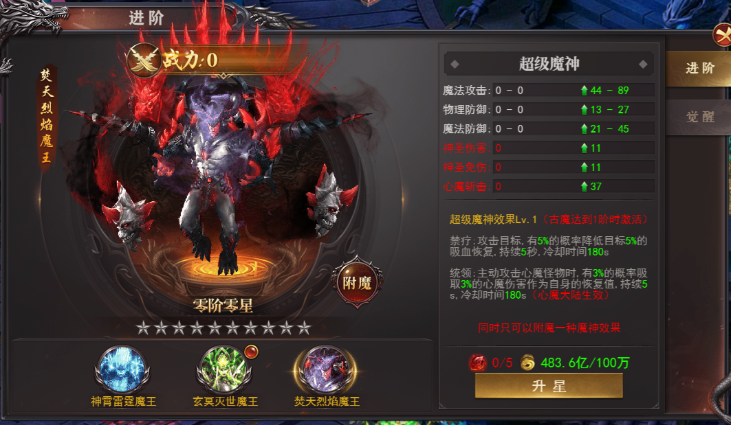 分为3个古魔,每个古魔进阶可以提升自身专属技能