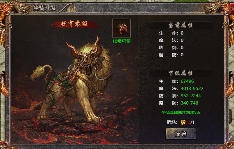 当玩家抚育升到10级、25级时可获得稀有的坐骑时装
