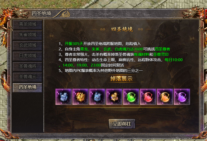 四圣绝境地图内可以获得稀有装备-圣兽灵印与圣兽炼魂材料