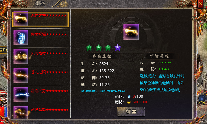 提高神器的御器属性,可以提高缴械抵抗buff效果