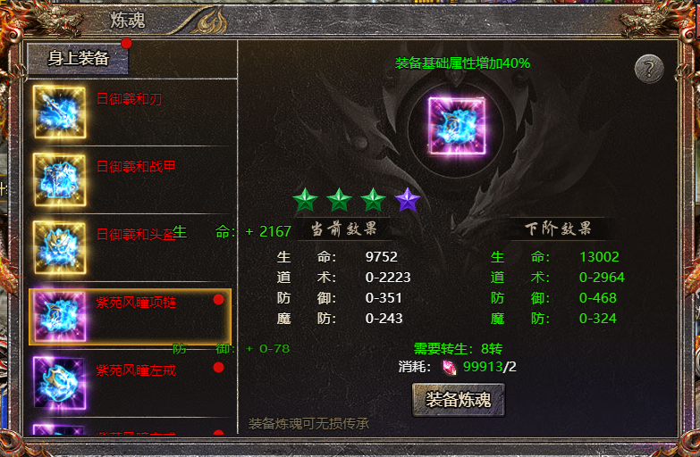 玩家可以通过飞升炼魂大师提高飞升装备的属性