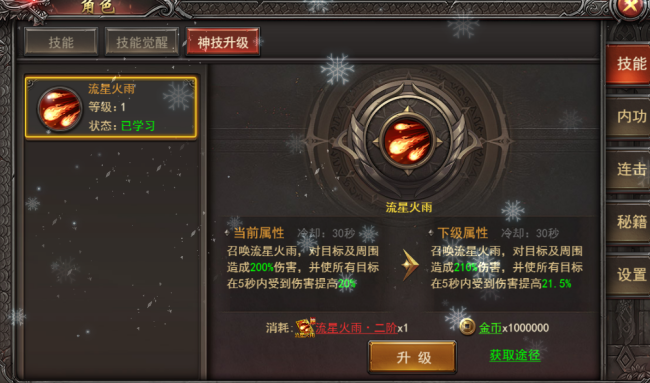 (1).新增神技升阶:需拥有神技开启,升阶需消耗对应技能书,技能书可通过合成获得