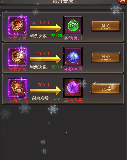 (2).灵丹获取:可通过伏羲之灵、伏羲之心兑换灵丹,也可通过挖掘镇妖塔尸体获取