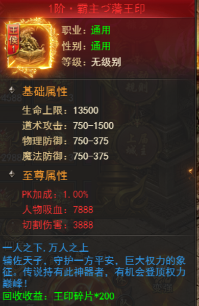 玉玺:跨服争霸战中擂主行会获胜时,行会会长奖励