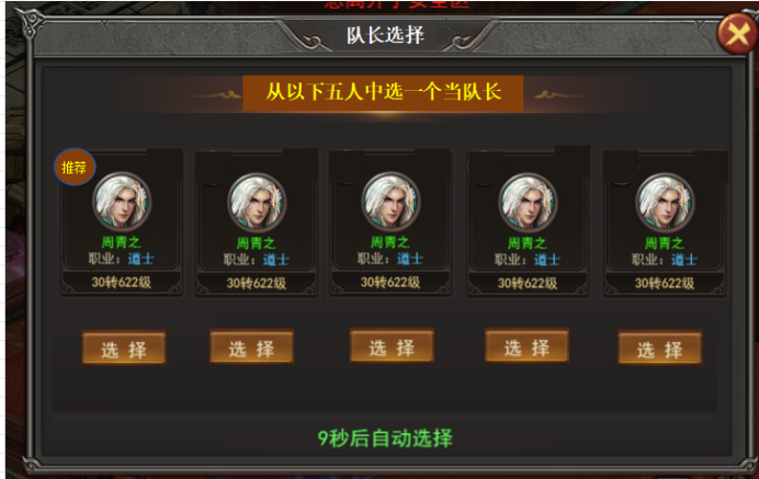 c. 活动开始时界面选择一人为队长,如无选择,系统自动选择(战力最高);