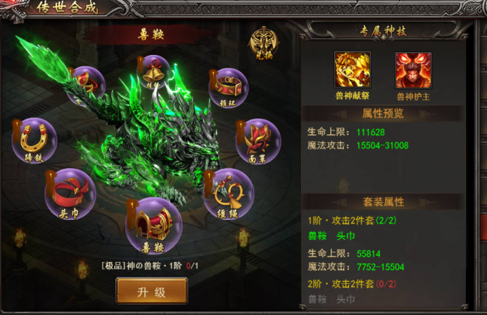 2. 战宠-兽神装备兑换:可通过碎片兑换成品道具
