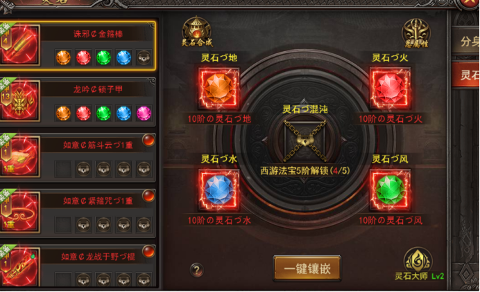 d. 穿戴灵石可激活灵石大师,总等级越高,增加的西游特殊属性越高;