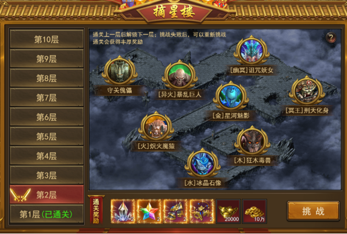 b. 通关前一层后,解锁下一层,挑战失败,可以重新挑战;
