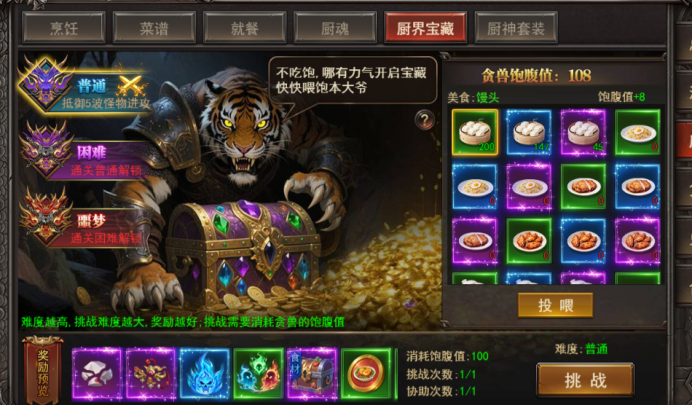 a. 厨界宝藏有3个难度,普通、困难、噩梦;
