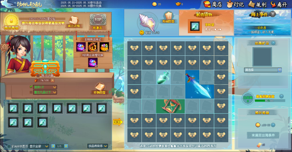 6.出海最终收获的四海币将受传闻中紧俏货物、海上事件及出海护卫的影响产生正负波动