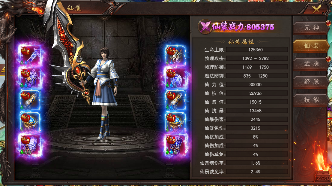 仙装可在仙界历练和六道幻境打怪获得,本体和元神都能穿一套仙装,所以小编这里着重讲解一下仙装的培养