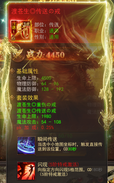 技能1:传送,等级1即可激活。可直打开小地图接点击鼠传送到选择位置,可无限传送,升级特戒缩减冷却时间