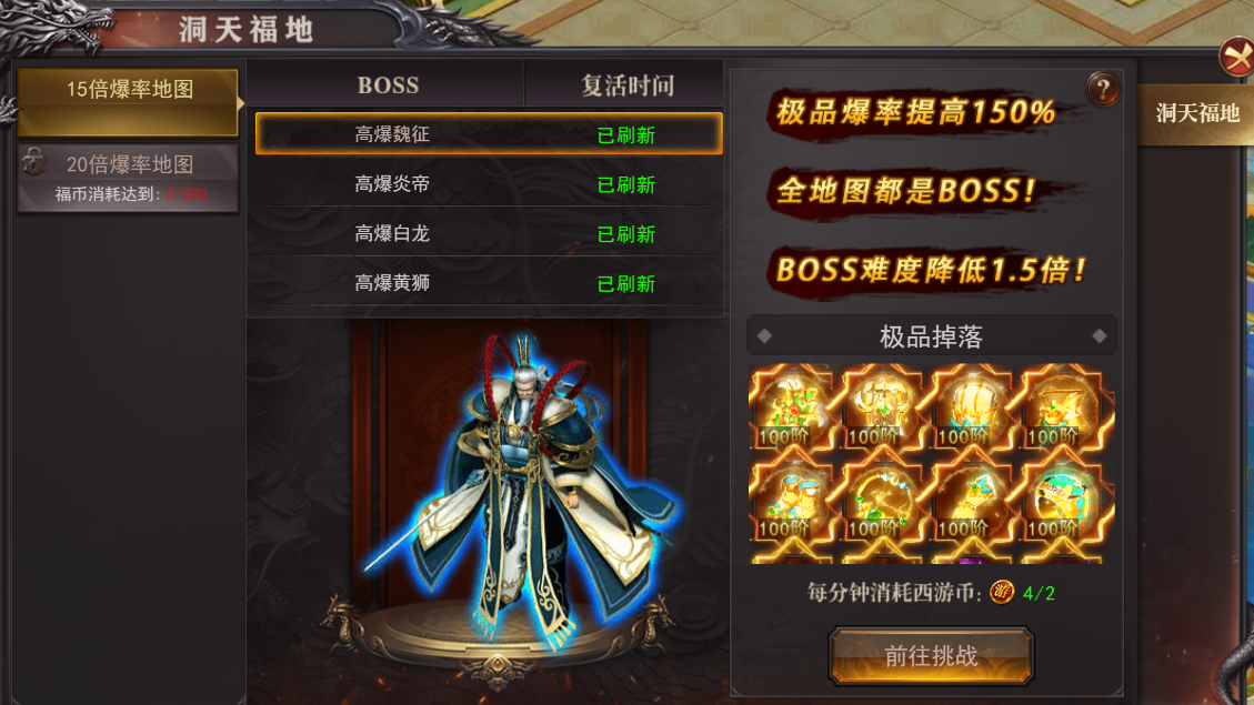 (1)洞天福地内boss携带大量稀有道具及装备,且boss难度极低