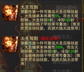 (2)特殊:穿戴如意金箍棒、黄金锁子甲可激活专属技能-大圣驾到