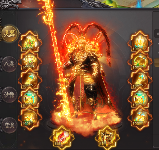 (1)灵器:一共10个部位,可通过九重天、囚魔牢笼、洞天福地获取