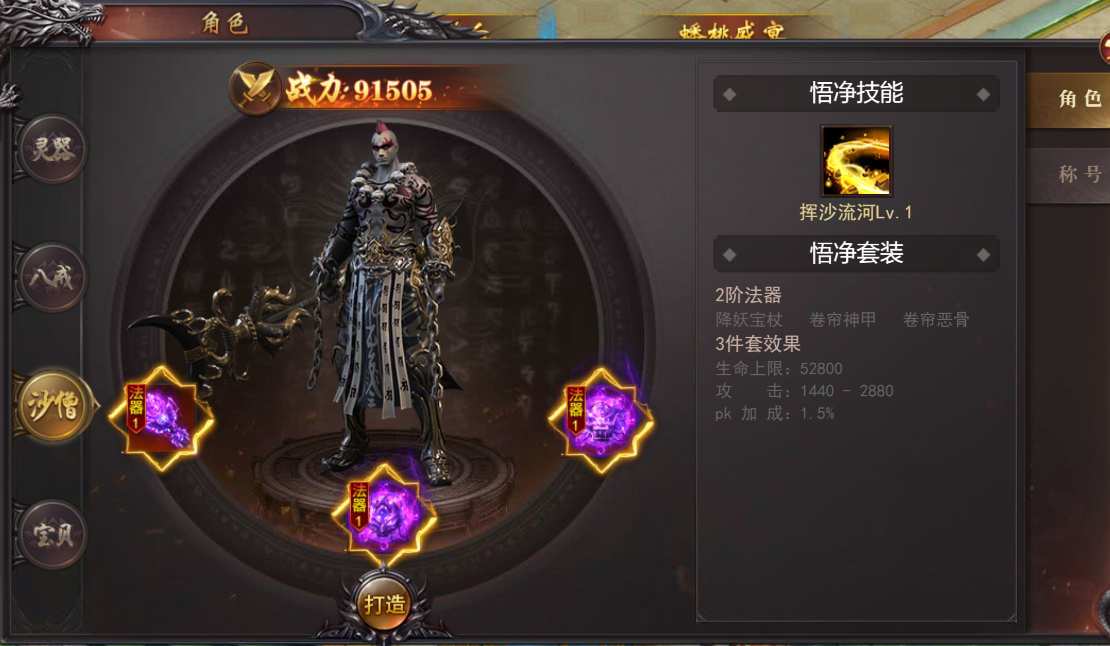 (4)沙僧:穿戴三件悟净法器即可激活专属技能-悟净技能