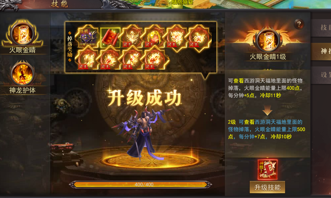 1.学习火眼金睛神技后可查看洞天福地高爆BOSS掉落!