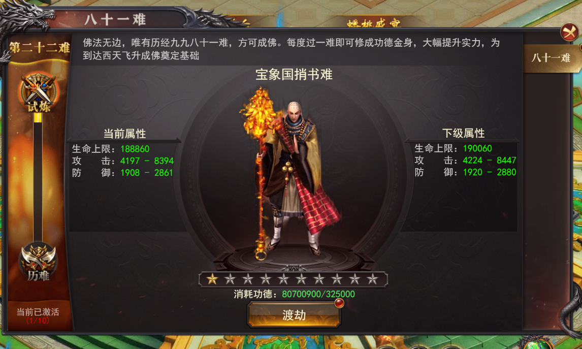 (1)消耗功德点亮星级可提升基础属性