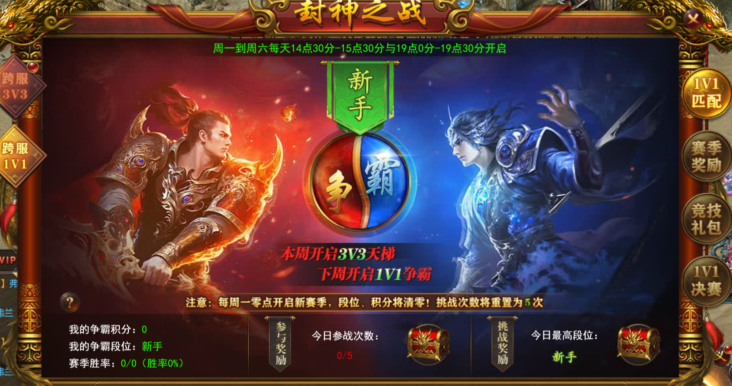 1、跨服1V1是赛季制玩法,一周一个赛季