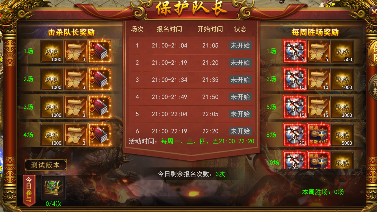 4.每位玩家每日可报名三场比赛,报名时间截止至22:19。拥有胜者特权的玩家可额外获得1次报名次数(竞技称雄活动可以获取特权)。报名成功后,相应报名次数将被扣除。