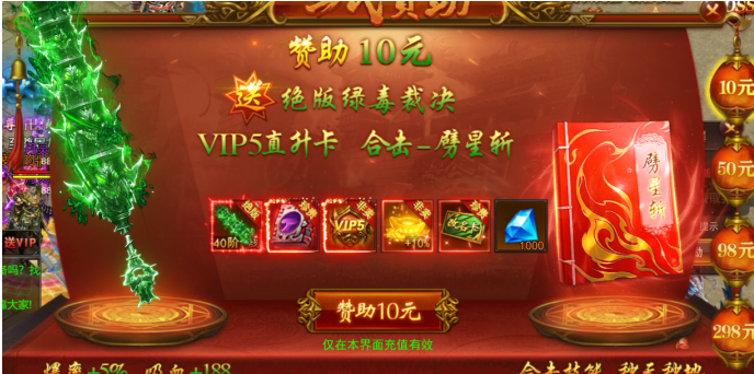 而一般平民玩家我建议进入游戏就直接购买一个10元赞助,可以直升vip5,获得强力合击技能和高级武器。。这个武器可是好东西,现在就能用,以后不用了还可以合成时装,永久保留属性,这个是非常有必要获得的。同时建议在充值界面首充一个10元,这样加上双倍钻石我们刚好可以买一个gm1,就有了随身回收,这样就不用来回跑回收了。这2个加起来爆率还提高了20%,可别小看这20%,装备爆率大大提高了。等我们做好准备之后就可以直接下能下到的最高级的图打怪,现在一身高级装备根本就不怕!