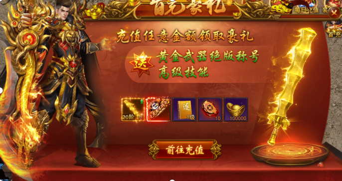 进入游戏之后快速过任务,升到200级,升级vip1,直接白嫖一个首充,获得黄金武器和称号,打怪速度大大加快。就可以去挂机地图进行挂机了。然后就是努力完成vip任务升级了。
