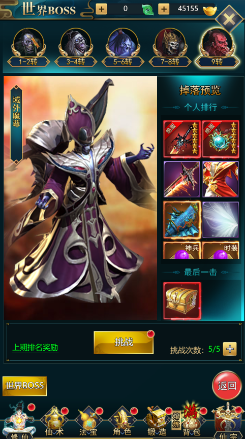(5)世界boss:跨服多人BOSS,根据最后一击、伤害排名、发送不同优质奖励。